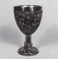 Who has not dreamt of that nobly shaped chalice, enameled all over with immaculate transparents... maybe just one fine gold line winding around its outside... so elegantly understated, so utterly simple... That is poetry. It would neither work nor last. A chalice has to withstand very hard use, and maybe even abuse. It must be carefully planned. That is why I have made this cup a teaching example. [Step by step with illustrations].