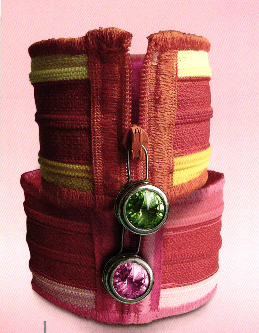 'Aufreisser' bracelet with zip fastener, felt and glass stones by Tina Echterhoelter
