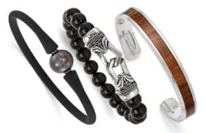 Gem bead bracelets are top sellers with men today. "They tend not to be overly flashy or distracting, which appeals to the millennial man, our target customer," says Alisa Bunger, director of sales for the Dallas-based Prime Art & Jewel. She says the bead bracelet continues to stay strong for men, especially when worn in tandem with other bracelet styles, as layering is a key trend. "Today's millennial man is evolving with the man-bun, skinny pants…and the layering bracelet trend goes along with that evolution."