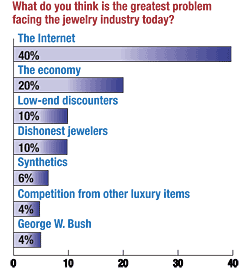Eighteen percent of this year's respondents said their customers had no concerns at all about buying color, but that lack of concern doesn't appear to be translating into an eagerness to buy. Although half of the survey respondents reported sales up overall, only 26 percent said their sales of colored stones had increased in the last year.