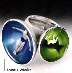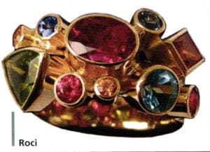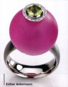 JEWELRY_Colorful plastic rings; unprocessed, colored gemstones; blossom bouquets on rings and brooches; flower forms; childlike and figurine pendant motifs.