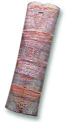 Deb Karash applies color to copper the slow way, using colored pencils and patience. She saturates the metal stroke by stroke, layering and coloring until the metal reaches a velvety depth in which brass rivets glow like embedded jewels. Karash was seduced by color in the late '90s, when she began cautiously introducing color into her jewelry with stones. The variegated hues within a single color, especially turquoise's mix of green, gold, and rust inspired her to try and reproduce the color on metal using colored pencils.