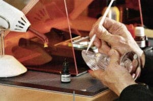 Colorit offers a number of benefits for restoring antique enamel jewellery pieces compared with conventional materials. The mixed color does not change when it is cured. It is absolutely color-fast and stable. Light-curing without pressure or heat prevents tension from building up in the existing material. The material is easy to use, as it is built up in increments, which are cured in seconds.