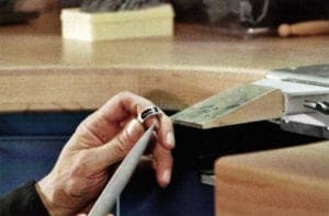 Colorit is easy to turn, mill and engrave. Inlays around the entire ring are turned using a lathe at high rpm and low feed. Sharp instruments should be used for this purpose. The blunt cutting angle of ceramic and diamond instruments applies excessive pressure and may cause chipping. Consequently, the pieces have to be processed carefully and cooled. Grooves can be cut in inlays to apply other colours or contours. Cured Colorit materials can be shaped by milling, filing or grinding.