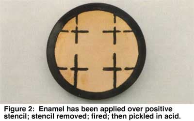 Although there may be few techniques today that are new and original, the combining of existing techniques in new ways may result in a fresh approach to an old idea. This project involves the use of stenciling, application of liquid enamels, sgraffito, acid etch and transparent enamel direct-on-copper. There's nothing new here, all the techniques and materials have been around for a while. However, the combination of these techniques may be new for some readers, and the emphasis on using transparent enamels direct-on-copper may be new for others.