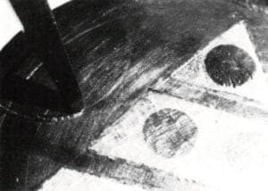 The metal must be thoroughly cleaned of oils, oxidation and other contaminants. After transferring the desired image to the metal, a scribe is used to scratch the image onto the surface. One of the inlay chisels is used to outline and raise a burr defining the inlay area. The complexity of the outline dictates the width of the chisel blade used. During outlining, the chisel is held at about a 70-degree angle, slanted in such a way that the chisel's cut is directed away from the interior of the inlay region. Figure 5 illustrates this step.