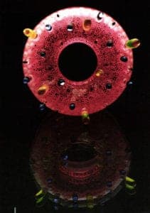 Peter Chang is a case apart. As sculptor and printmaker, he focuses on jewelry and functional art, whereby he draws on plastic - acryl, polyester and PVC -, not for ideological reasons, but because they are an ideal means to designing and realizing his individual vision of color. In order to elucidate the fascination of the micro-sculptures, one can dig in the artist s rich cultural substrate (Taoism, Jungian theories, mythology and fractals) or in the ornamental and architectural role models, which the designer finds in the world of flora and fauna and which Chang had investigated long before bio-mimicry came into fashion. In simple terms, Chang creates a rich world of images, expressed in fabled beings and providing the impression of a life gripped by constant transformation, conveying multiple levels of interpretation with a strong erotic component Adam Paxon also works with colored acryl, relying on its ability to capture light and a series of inserted 'special effects' (magnets and mirrors), in this way, he succeeds in conveying joy, sensuality and a most pronounced life energy.