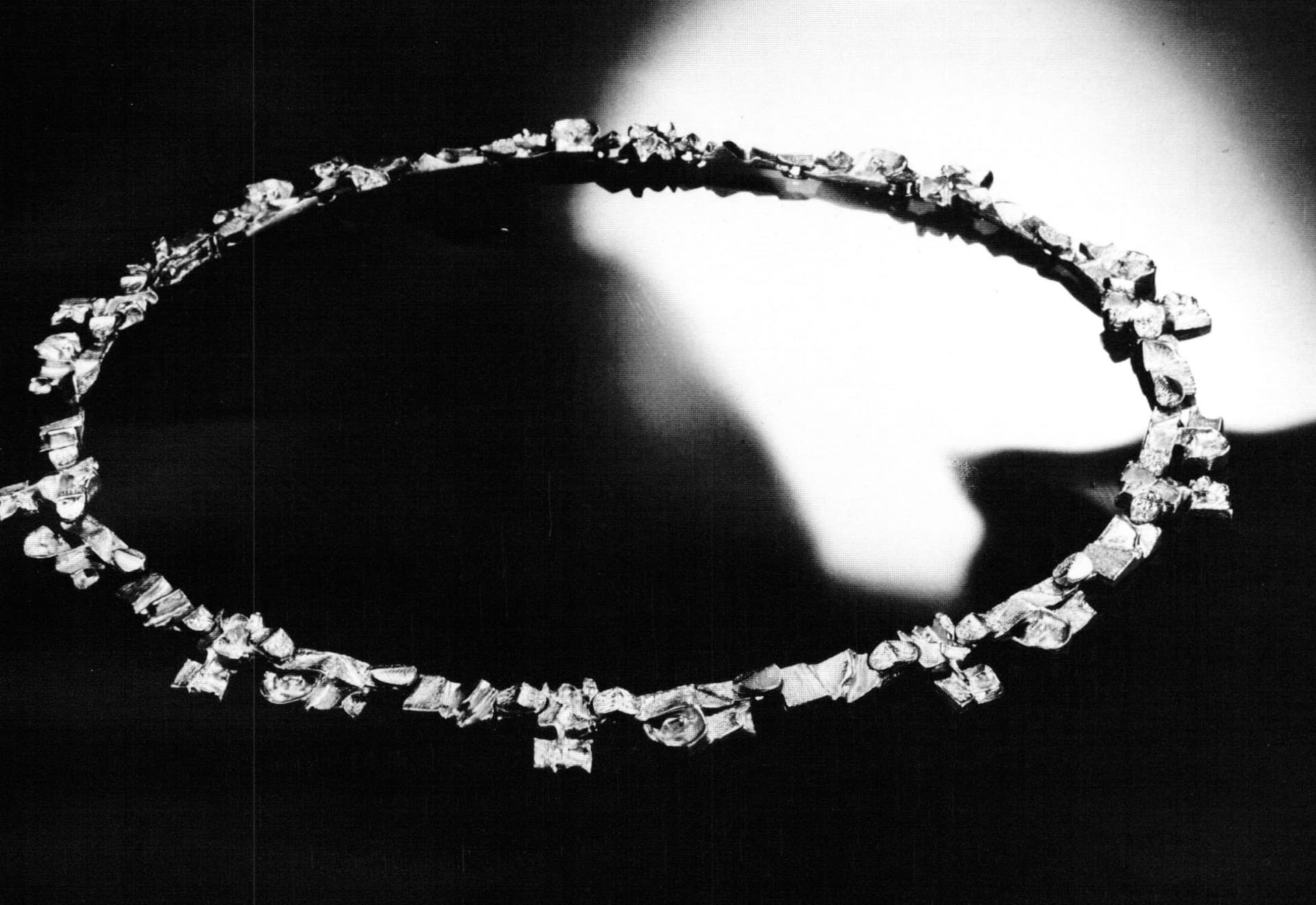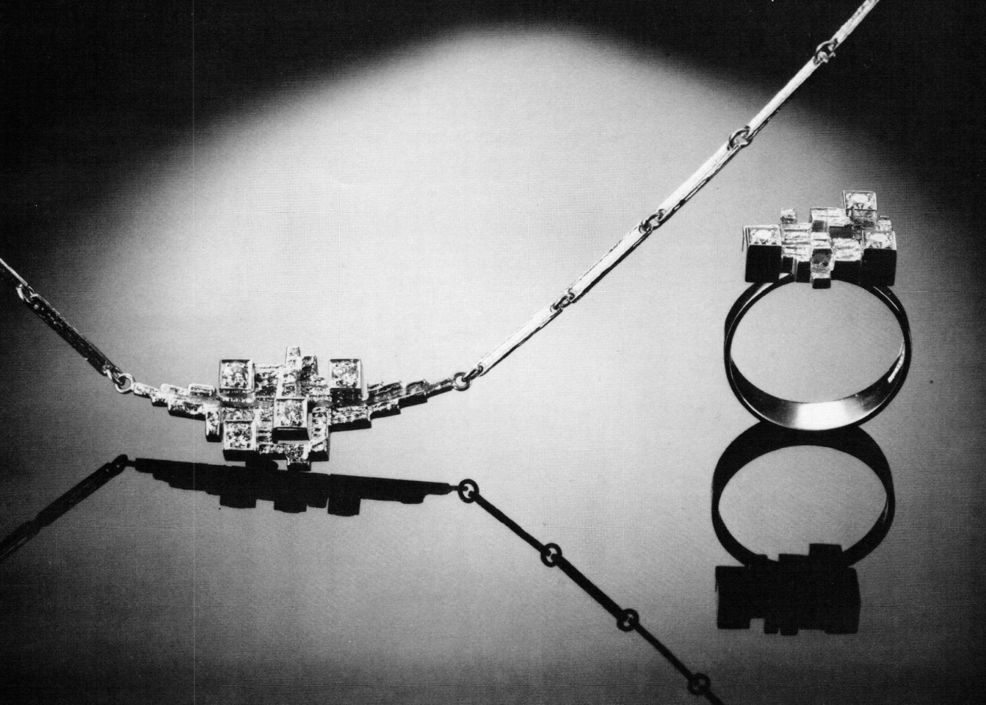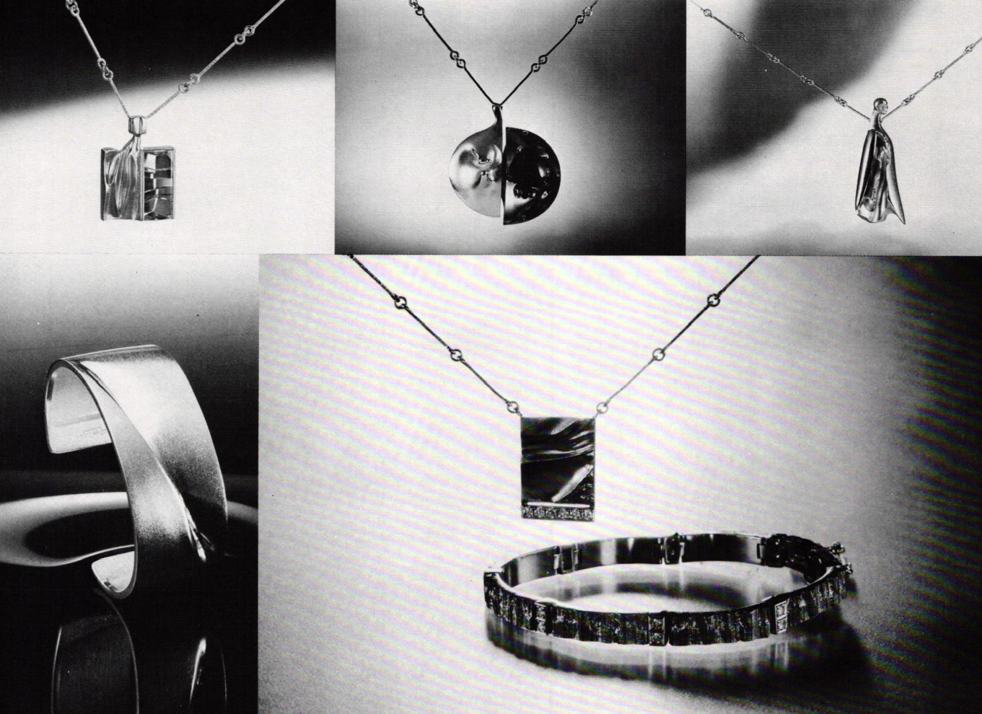 Although not primarily concerned with jewelry today, Weckström has a clear sense of what jewelry is all about, why it exists and what it means for the customer. He sees jewelry's role in the contemporary scene as a kind of social signal. "It's pre-verbal communication. It's like clothes, it reveals our social attitudes, education level. It's practical, it cuts down time." And he sees in jewelry the shift in social attitudes from the 1960s to the present. "The 60s were very optimistic. Men were wearing open shirts with lots of chains. Then the energy crisis came and optimism went down. People were scared. Men were all closed up with ties. The situation changed totally, and in a very short time. We thought—'tomorrow won't be better.' Now, slowly, the optimism comes back."