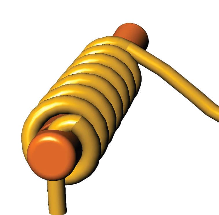 Spin the rod slowly while holding the end of the wire tight so as to create a coil on the rod. You should turn the rod by hand until you get comfortable with the process. We chuck the rod into a power drill and have one person operate the drill very slowly while the other person feeds the wire, keeping tension on the wire. Aim to make the coil as tight as possible, with each newly formed ring lying tightly against the others. This will give you a consistent link size and shape.