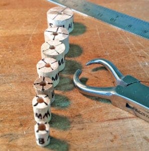 - You'll want to assemble a collection of these dowels in a range of sizes. I keep an eye out for wood dowels whenever I am out and about. My set ranges from 4.8 to 15.5 mm and works well for 28-gauge bezels with stones ranging from 5 to 16 mm in diameter.