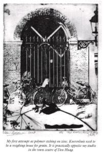 This basse-taille etching was the first-ever enameled artwork to be entered and accepted in a group exhibition of the Graphic studio, at the well-known gallery of the Haagse Kunstkring (The Hague Art Circle), together with the original inked print.