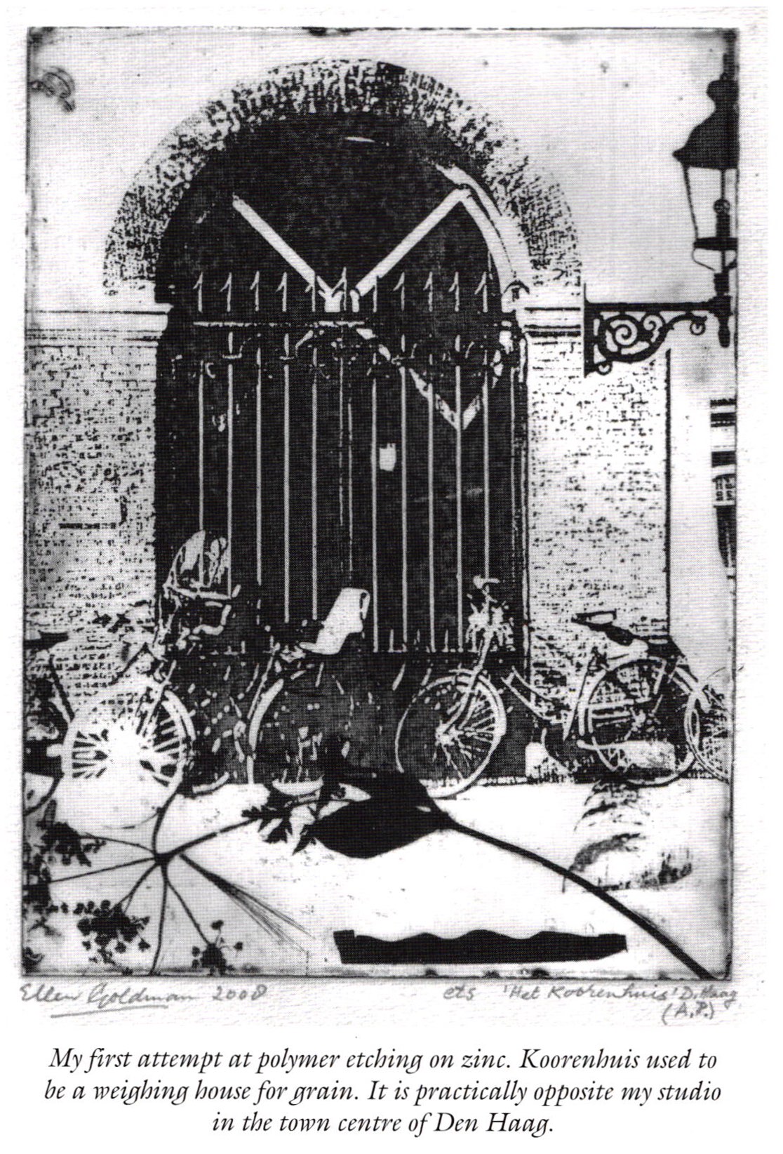 I am rather fickle in choosing the techniques I like to use, and last year I suddenly felt the urge to start etching again. As it had been several years since I had stopped etching, I decided to follow a 'refresher course' which was given at our local Graphic Studio which has the best equipment possible and is open to all professional artists. It is at walking distance from my own studio in the centre of Den Haag. The program mentioned polymer etching, a technique I had ever used so far. The course was to be tutored by a well known Dutch graphic artist, Paula van den Elshout.
