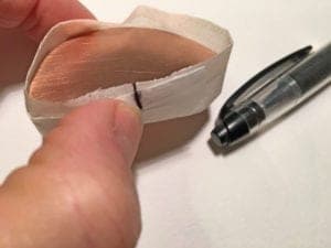 - Alternatively, you can use an X-ACTO knife to cut a thin strip from the marked paper to create a pattern that you can use double-sided tape to adhere to the object. The choice in method depends on the unique form you are working with, and sometimes one way will be easier than the other.