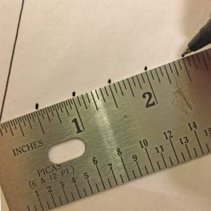 - Make tick marks precisely at the half-inch marks of the ruler.