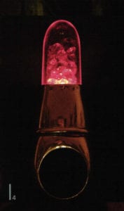 Nevertheless, glass still remains only a conditional replacement for gemstones. Scientists have, for a long time, been looking for ways to culture genuine crystals. They should have the same properties as their natural pendants and should be of uniform quality and color. They have not yet found the alchemists stone, but they have succeeded in culturing gemstones in the laboratory. In 1890/91 , the French chemist August Verneuil (1856-1913) succeeded in creating crystals in his Parisian laboratory, drawing on the flame melting or melt drop method. The raw material is melted at temperatures of around 2,000° Celsius. It forms crystals on a base and gradually assumes a pear shape, the melting pear. These melting pears can reach weights of 200 to 500 carats. These days, synthetic gemstones are produced using this method. At the start, Verneuil mainly produced rubies. He introduced synthetic sapphires in 1910, followed by transparent corundum, called diamondite, as well as yellow, green and alexandrite-colored stones. These days, the Verneuil method is principally used to produce rubies and corundum. Oxides or metallic salts are added to create color, e.g. chromium for red, nickel for yellow.