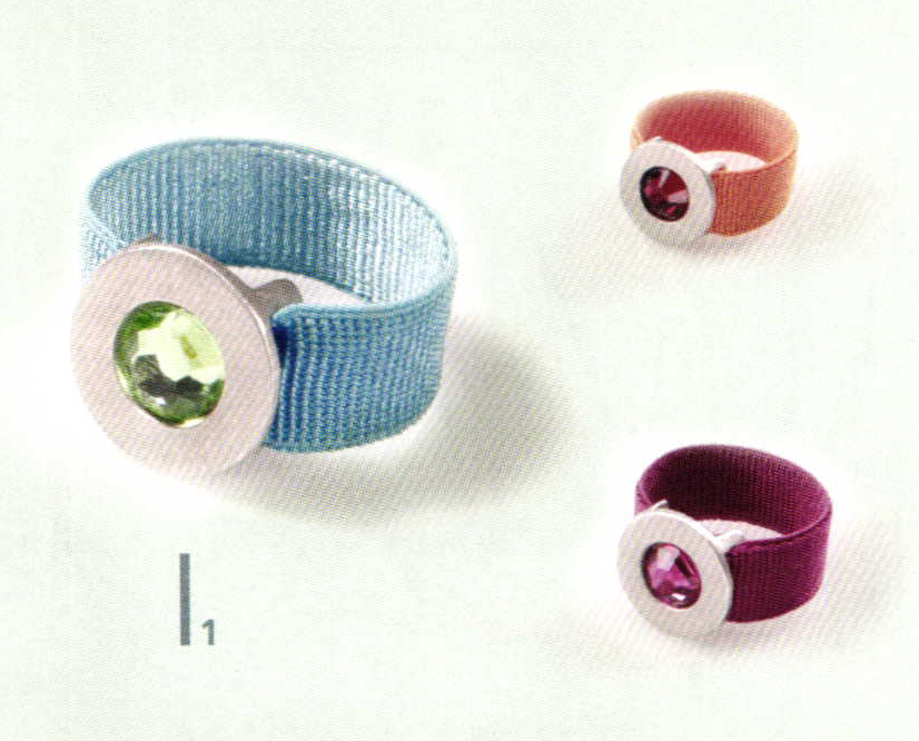 'Fantastic Elastic' ring made from rhodinated silver, Swarovski crystal and textile band by Petra Kohle