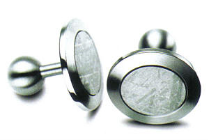 | Fascination of outer space: The cufflinks by Meister have an impressive, structured meteorite stone, decently framed in a silver setting |