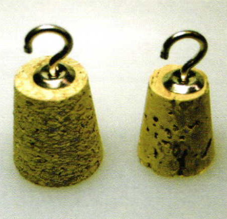 Bend a pair of hooks shaped like this and make the top hole big enough to fit the hooks on the corks. Then gold and rhodium plate the hooks.