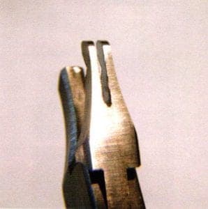 Please wear your safety glasses. Most setting pliers have a groove in the top. Take a pair of separating disks stacked on one flex shaft mandrel and start to grind a groove through the top of the pliers where they are already grooved.