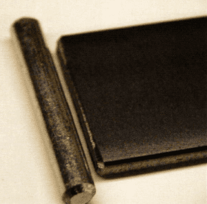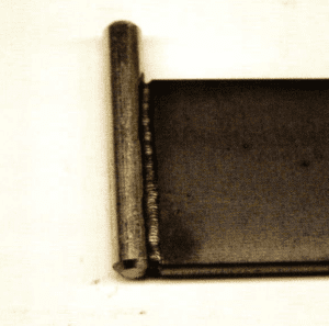 Cult two pieces of 1/4 inch rod as pictured, slightly wider than the flat bar stock. Bevel the ends of the bar stock to laser weld the two together. If you want to braze them instead, there is no need to bevel the ends. These will act as end stops on the pliers rack.