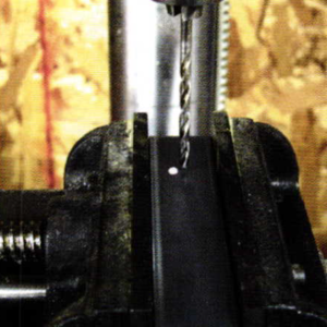 Mount the bar stock in a vise with the side with the 1/4 inch rod protruding to the left. This is considered the top of the bar where the rod protrudes. Measure in 1 inch from the end and 3/8 of an inch from the top of the bar. Drill an 11/64 inch hole. Come in 6 inches from the same end and measure 3/8 of an inch from the top of the bar and drill another 11/64 inch hole. Repeat this on the second piece of bar stock.