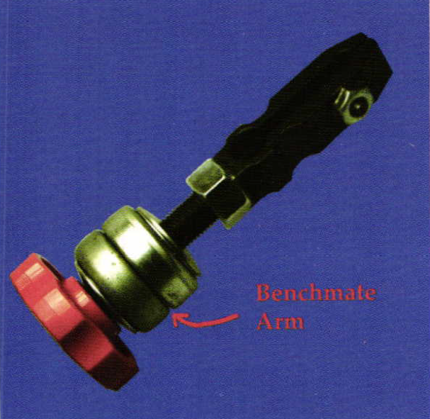 This picture of the Benchmate also has a Steady Rest installed. The clamp will work without the Steady Rest. This picture shows the clamp with the arm down low. This gives you more clearance for larger items.