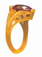 When working in this manner, I usually start with a vague idea of what I'd like to create. For example, in the step-by-step project illustrated in this article, I planned to create a ring with a pear-shaped center stone, the point of which I wanted tipped low. With that in mind, I worked my way through the important known parameters first-cutting a ring blank wide enough to accommodate the stone, opening the blank up to the proper ring size, determining the overall height of the ring, and cutting a bezel for the stone. Then the fun started.
