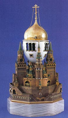 | Model of the Moscow Kremlin (music box as an Easter gift). St. Petersburg. 1904. Karl Faberge. Gold, silver, cast and chased. Enamel, onyx and glass |