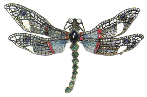 | Brooch "Mermaids". Moscow, around 1900. Gold, silver, diamonds, emeralds, rubies, sapphires and window enamel. |