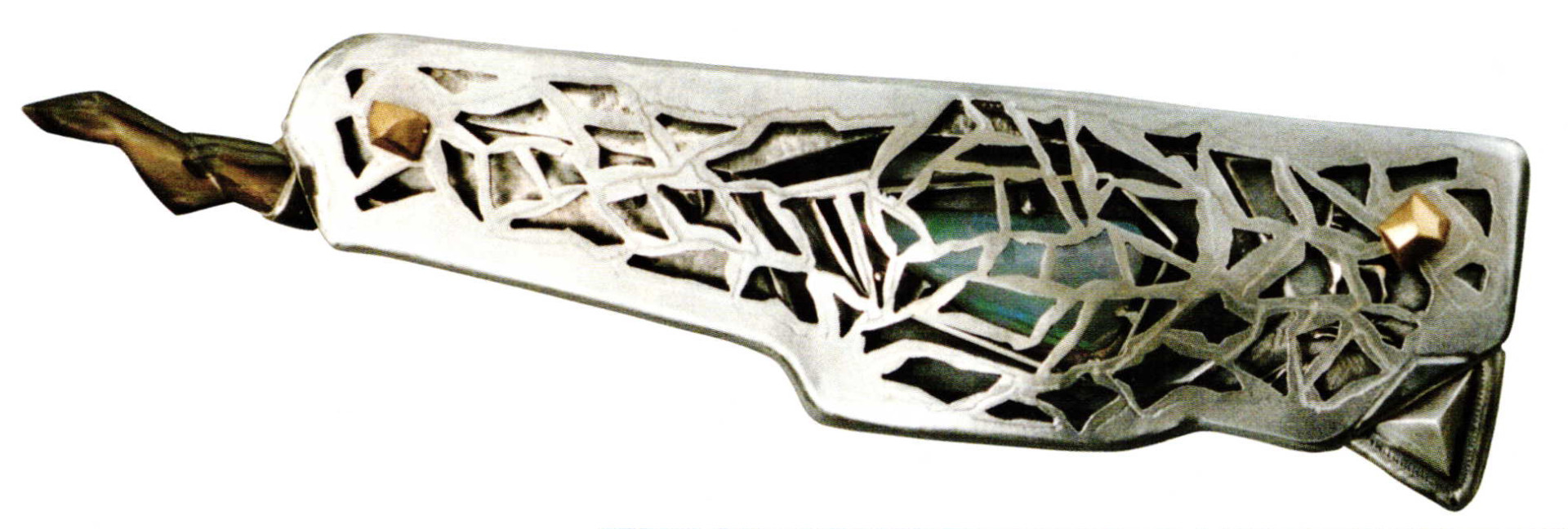 Constructivism has been dominating Czech jewelry for the last three decades of the twentieth century and is now one of the strongest influences in contemporary designs. Several artists dedicated their ideas to technological designs, using elements as decorations but even creating "engineering"-jewelry. One of the best known is Anton Cepka, carrying on and developing this art into the 21st century. He may be addressed as one of the doyens of Czech jewelry design. Slovaks will claim him as one of them, but Anton Cepka cannot be separated from the development of Czechoslovakian and later on Czech artistic jewelry. He is now at the end of his sixties and living in Svaty Jur in Slovakia. From technological objects he has turned to a technological decoration of his design, from jewelry objects to wearable products.