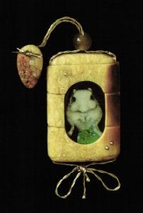 If you have ever wondered how two people can collaborate on a single piece, talking with the jewelers Dan and Daniela Imre clarifies the process. They literally finish each other's sentences just as Dan finishes the brooches, necklaces, and cufflinks that start with an enamel-on-glass jewel by Daniela. At the center of each of their engaging works is a highly detailed grisaille enamel painstakingly created by Daniela. She says, "the jewelry is totally subservient to the image in the enamels".