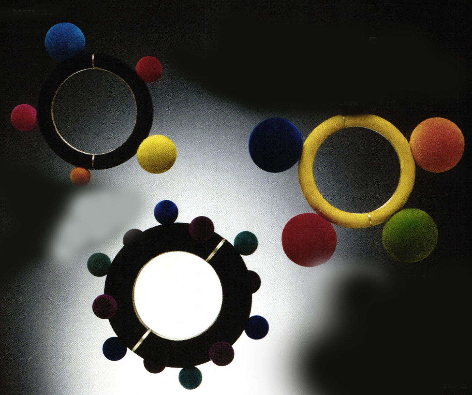 In the course of an almost 30-year career in jewelry design Jocz has experimented with many different forms, colors and materials. Classical work with precious metals and gemstones is represented alongside collections with modern materials. Simple geometric figures such as those in the 'Candy Wear' collection are produced in tandem with the intricate bracelets in flocked or anodized aluminum. One constant is the prominent use of color and design. Working with aluminum allows him to design more voluminous bracelets, deceptively light in spite of - or even because of - their size. "When I started to work with aluminum about 5 years ago, I didn't know much about it. But I experimented with it and it took me to a new direction". At the same time, Dan Jocz began to incorporate other artists in the production of his jewelry, for example an enameling artist. This interaction with others is gaining in significance, representing an enrichment for Dan Jocz. "One thing became clear for some of us: there was a change in the air - craft objects, all the 'loaded stuff' had run its course. We started to see that we were no longer single artists and craftsmen but design entered the studios again!" The jewelry has become lighter, not just in weight, but in the statement that it makes. Jocz goes on to explore fashion jewelry, which he compares with the experience of buying candy as a little child: "You buy the sweets and put them in your mouth and it hits you! Five minutes later it is gone, but it was fun and you want to do it again. This is how I define the kind of jewelry fashion I am interested in. There is no depth to it in terms of an important meaning that this piece of jewelry has. The idea is that this thing hits you somewhere between wonderful and stunning and then it disappears. For me this is arguably as valid an experience of artist studio jewelry as any," states Jocz. His Candy Wear collection embodies this with catchy forms and scintillating colors. His ongoing desire to broaden his art resources led him to explore a pop culture connect on which brought him to the motorcycle painting. His fascination artistic work on motorcycles and his with aluminum led to his opulent with their humorous nod to the ruff of the 16th century. Lacquer is the aluminum layer for layer, the effect is one of a material that has lost own tactile properties - the wearer of observer confusing the unusually smooth polished surfaces for plastic. On the other hand, with this procedure Dan Jocz eliminates traces of hand craftsmanship. "I have intrigued by the measurement of the in jewelry through the mark of the artist's hand on the material in a finished work. While handwork remains as the basis of my work, it is eliminated as an aesthetic quality in the final product," says Dan Jocz. The irony that he illustrates is that it takes exacting hand craftsmanship to remove the traces of the very same. Following the presentation of the collars to a European audience at the Galerie Marzee this year, American audiences will have the opportunity to view them for the first time at the SOFA in New York in cooperation with the Ornamentum Gallery (Hudson, New York). And what plans are there for 2008? "I just need to sit back and think about work". Typical Jocz.
