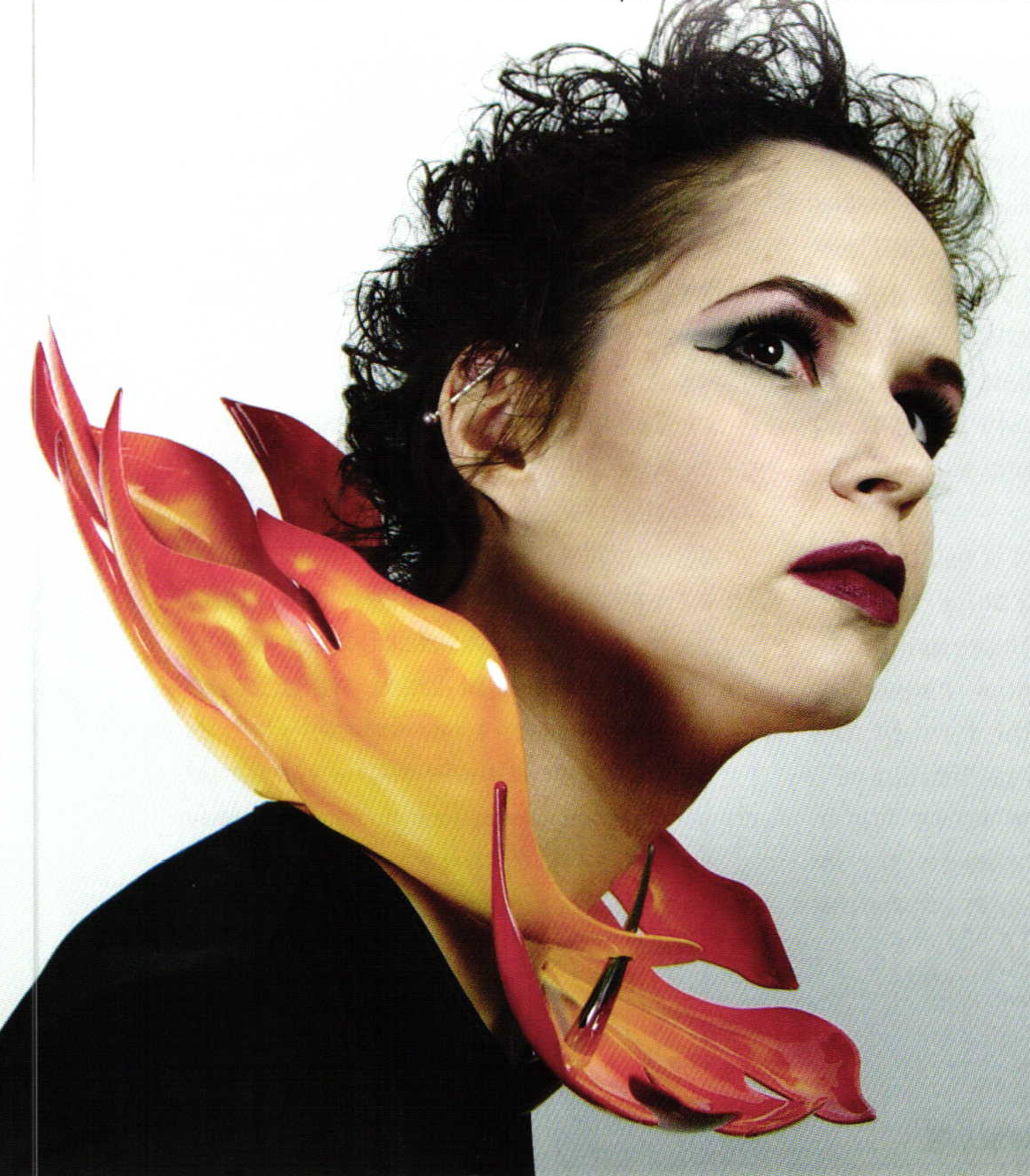 'Fire Water' is the name of this collar created in 2007 which, despite its large volume, is very light. Formed aluminum