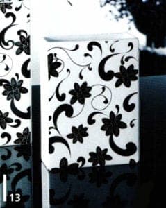 Living Filigree lamps and delicate metal weave; black biscuit porcelain; magnificent tableware and bed linen; white china with silver decoration; black glass accessories such as dishes and vases; lace effects on glass and porcelain; scissors cut effects; baroque elements with a modern interpretation.