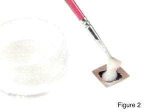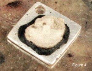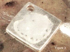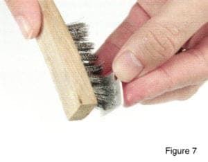 As the blackened paste comes off of the silver, it will take the enamel with it. (fig 6) Use a stiff steel wire brush to brush off any of the black stuff that remains. (fig 7) If there is a lot of enamel to remove, you may have to repeat this process a couple of times.