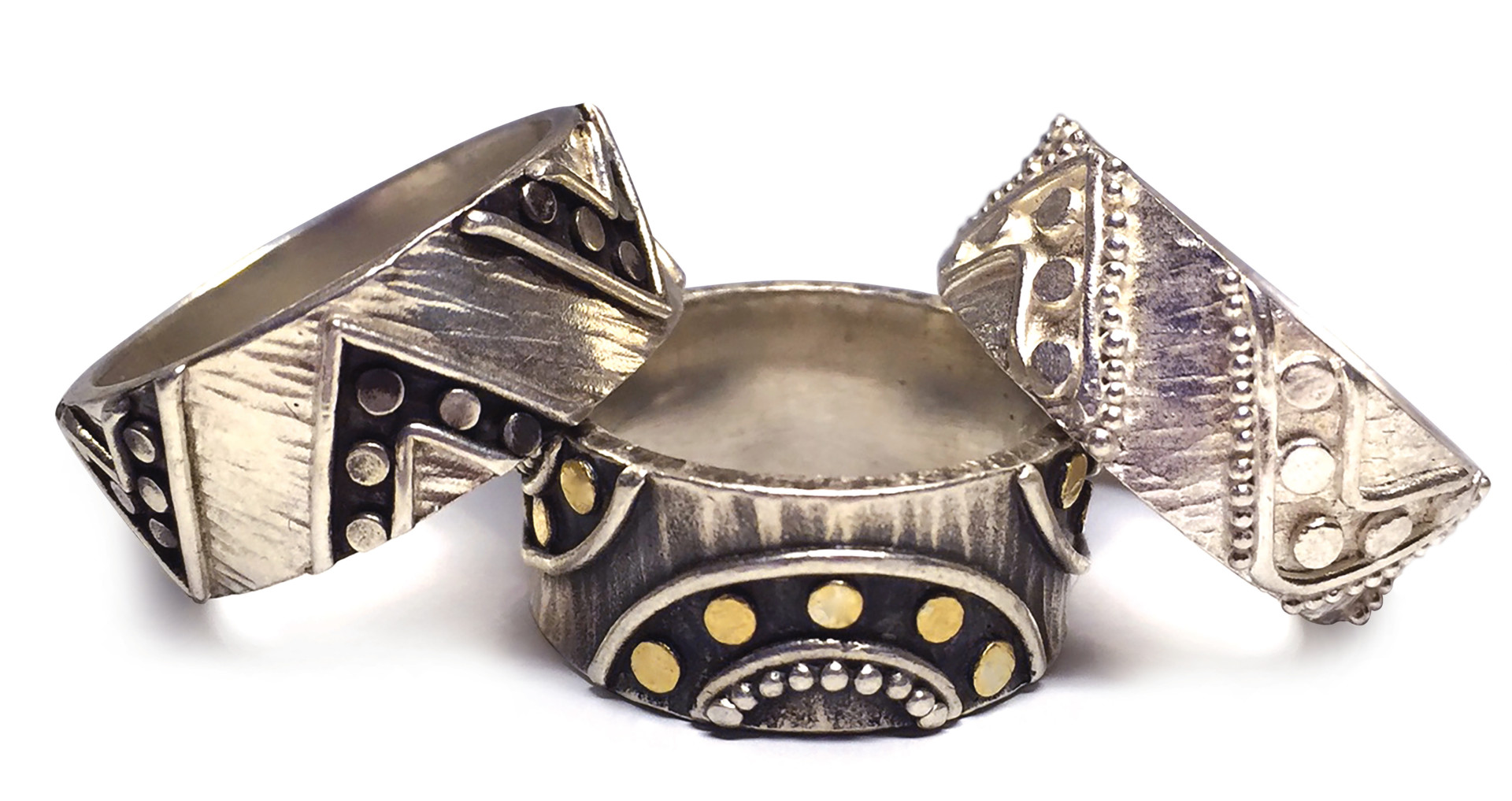 One of the first projects Rita Marie Ross, an artist and metalsmith in Austin, Texas, tackled when she started working with Argentium was to make three identical rings in the metal. "I sat them down on top of each other, heated them up, and fused them together," she says. "It happened so fast and perfect—that's a wow factor! Once they're fused, they won't move. And the beauty is that there's no solder so you don't have to clean anything."