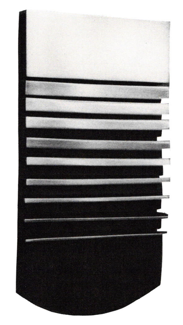 In the Facade series that followed, "a repertoire of the patterned surface" evolved from the graduated and geometric linear elements that had formed the Night Train series. And though more abstract and less illusionistic, this series continues to study the effect of surface pattern and plane. While the Night Trains were explicit illustrations of perspective, what followed are more allusive studies of surface.