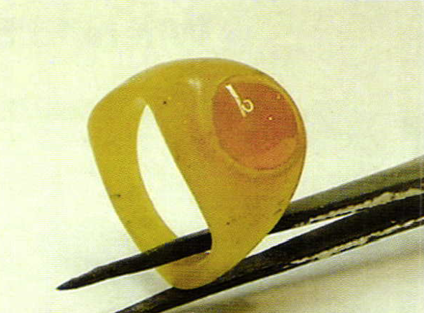 But, this photo, shows the payoff. This is exactly what I was looking to create. But … how am I going to get the stone out without destroying the wax pattern? Very carefully, that's how. Wax is a very forgiving medium, so if you go really slowly, it'll bend, and stretch, and not break. So I very carefully begin to push the stone out from the bottom, and spend about 10 minutes working it out. It came out with a little damage to the bezel.