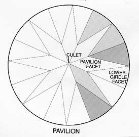 The crown angles in well cut diamonds must be within a degree or two of Tolkowsky's 34 1/2 degrees for the crown angle and 40 3/4 degrees for the pavilion angle in order for the light to be trapped with in the diamond to produce optimum brilliance.
