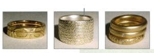 In 1990 Diana Porter went to the University of Central England to do a 3 year full time degree course in Jewelry and Silversmithing. "I love the way that working with metal centres and concentrates my mind." Leaving the college in 1993 Diana immediately started her own business, making jewelry in her front room. In 1999 she was awarded Jewelry Designer of the Year by the BJA - British Jewellers Association. Diana's collections are best known for words etched into silver or gold and her personalised commissions often come from celebrities, such as Daddy G of Massive Attack. She now supplies 100 galleries and shops in the UK, Scotland and the USA.