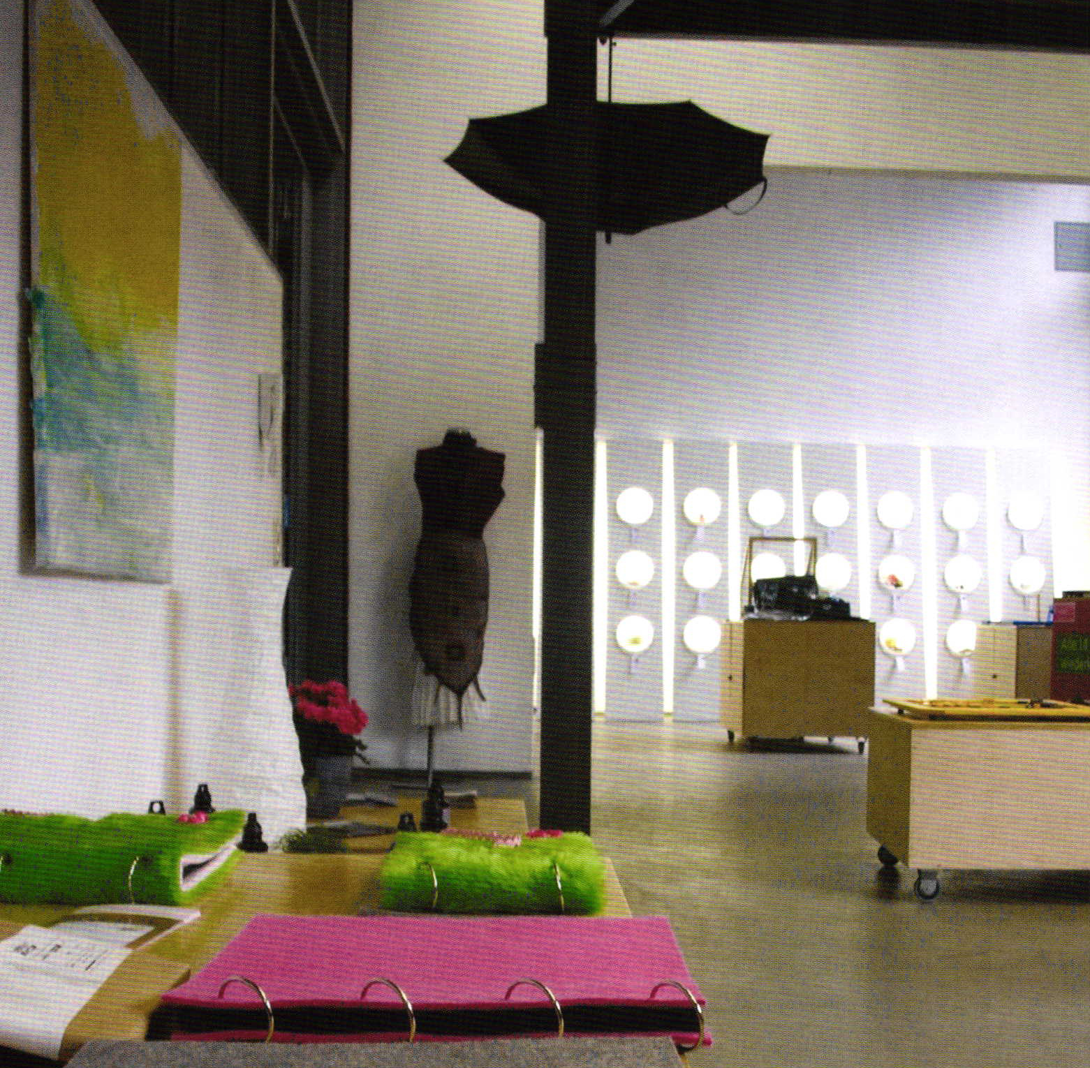 Photo albums, lampshades, backgammon sets - at design:palette, every product is given sales space measuring 80 x 120 cm, matching the size of a euro pallet. In the background we see the bucket presentation '10 Liters of Design'