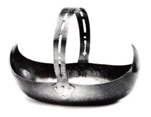 In 1911, objects produced by the Dirk Van Erp workshop were made primarily from 12-gauge copper, which was purchased from various vendors. Some objects were made from brass. Dirk would still occasionally use a brass shell casing for hammering. The objects were made in two ways that are traditional in metalsmithing. An object was either made from a flat piece of metal that was round or square and shaped over a stake of mold or it was made from a flat, rectangular piece of metal that was hammered and shaped, the seam brazed and a disc soldered into the bottom. The edge was either rolled from the piece itself, or a ring was soldered to fit. Sometimes edges were left unfinished; sometimes they were crimped.