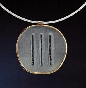 What do all of these references have in common?: Nature, and the materials of which it is comprised. One notices in Japanese packaging the extreme care and attention that is paid to each element, no matter how simple or seemingly unimportant. To the Japanese all objects are objects of value as they comprise elements of the life in which we are daily engaged. Thus, as everything we come into contact with effects us in some way or another, logically, the experience of that object should be a pleasant one. Friedlich felt the richness in this experience of and attitude towards life and has chosen to create objects which can bring such experiences into wearers' and viewers' respective lives. His work reveals an appreciation for the smallest details and a vision which finds pleasure and meaning in the dramatically different composition which results from the smallest change - slightly moving a carved element, turning a small triangle of gold on its side.