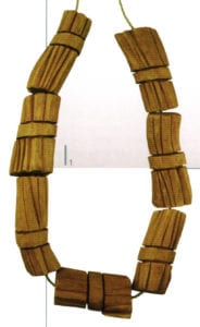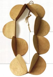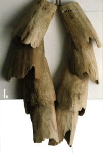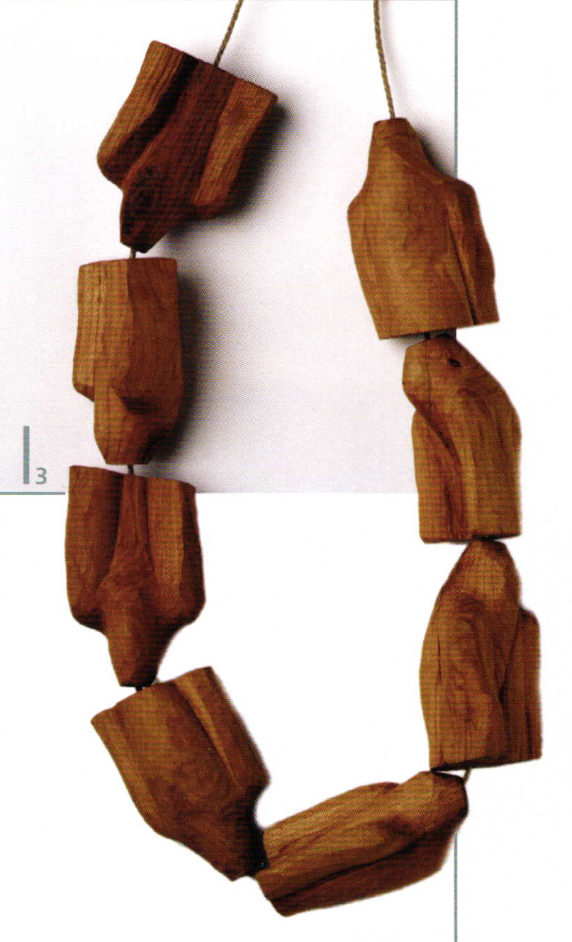 Ancient messages of timeless energy as Ellen Maurer-Zilioli states. Objects with a high level of plastic intensity which invite touching and 'grasping'. The materials used are diverse. Gold, silver; aluminum, iron and titanium are used as well as fungus, ivory and wood. Over time, the mixing of materials is avoided more consistently. One rare exception among the recent works is the titanium and ivory necklace from 1997. "Each substance stands for itself. The characteristics which determine the shape interest me above all else with the material," says Dorothea Prühl. The conviction that more can be achieved with less is clear, or as she puts it: "l never wanted any surplus". Gemstones and diamonds can be found in the earlier work but only where they have a content-related function. Fantasy is fuelled by an intensive experience of things, beings and appearances. As such, she doesn't obtain the wood for her work at the home improvement store or from a carpenter; she collects it during walks across the landscape. She herself writes: "The house in Mecklenburg is important. It is my chance to retreat and the place where I can concentrate on matters. The experience of this north German landscape will be alive in my works from now on (1976)". Geometric forms such as angles can also be found which form a symbiosis with nature through the material and world of technology. The wooden star from 1999 with its zigzag form and leaf necklace also made from wood with its sharply cornered creases are further examples of this penetration of worlds.