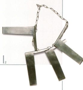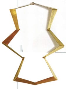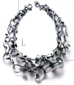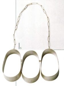 Plasticity requires size, a realization which has been displayed ever more clearly by the artist over the last four decades. The whole is more than its individual parts, another experience which emerges from the development of her jewelry. The joining together of shapes for decoration emphasizes and increases the interpretation of her design vocabulary conjuring magic and mystery. And of course give a reason as to why interpreters of her work evoke visions of long-gone eras and see ancient heroic female figures, such as the Queen of Sheba, as the wearer of her bold and sometimes bulky and angular creations.