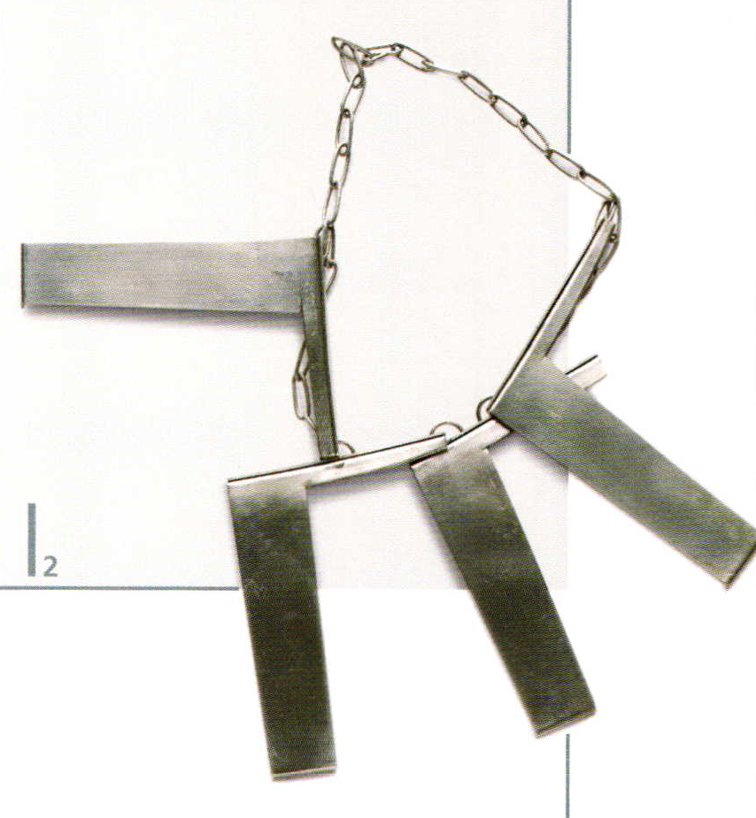 Dorothea Prühl's works concentrate primarily on necklaces and to a lesser extent on brooches, jewelry sculptures and earrings. She is not interested in rings as jewelry on the periphery of the body. The situation in the former German Democratic Republic and at the university where she has spent a large proportion of her artistic life, was not characterized by reprisal. However, as her objects and theses did not correspond to the tastes of the majority, she and fellow comrade-in-arms Renate Heintze, who died in 1991, fought their own tireless mini battle against ignorance and traditional artistic thinking. A tug of war over the years which ended after the reunification when Pruhl started work as a professor at the Giebichenstein castle in 1994. After the fall of the wall, the wider public in West Germany too began to realize that Prühl's creations had implemented a revolutionary development delimited from the avant-garde of the West and introduced signs, the consequences of which are not yet fully clear.