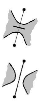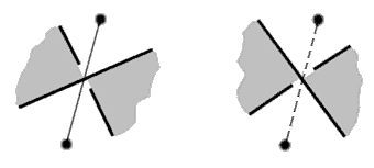 You then put a sign onto this edge depending on the over-under situation: a + sign if the strand which passes over comes from the left when you place it in a white cell, a - sign otherwise. You can represent the sign of an edge graphically with a solid line if + and a dashed line if -.