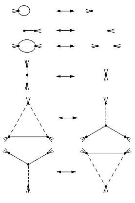 The Reidemeister movements translate themselves into graphs by these equivalences: