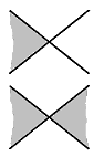 The cells of dimension two thus partition themselves into black and white and it is easy to see that it makes a checkerboard where each crossing has the following appearance: