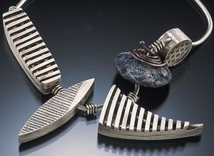This has been a stellar year for Korsage. She acquired her first solo studio, where she held her first studio show, filling its 500-square-foot area with cookie-eating, jewelry-buying customers. Seventeen shows a year keep her on the road but between "gigs," she hunts for new ways to alter metal. Recently she discovered a flaming new surface texture for metal.